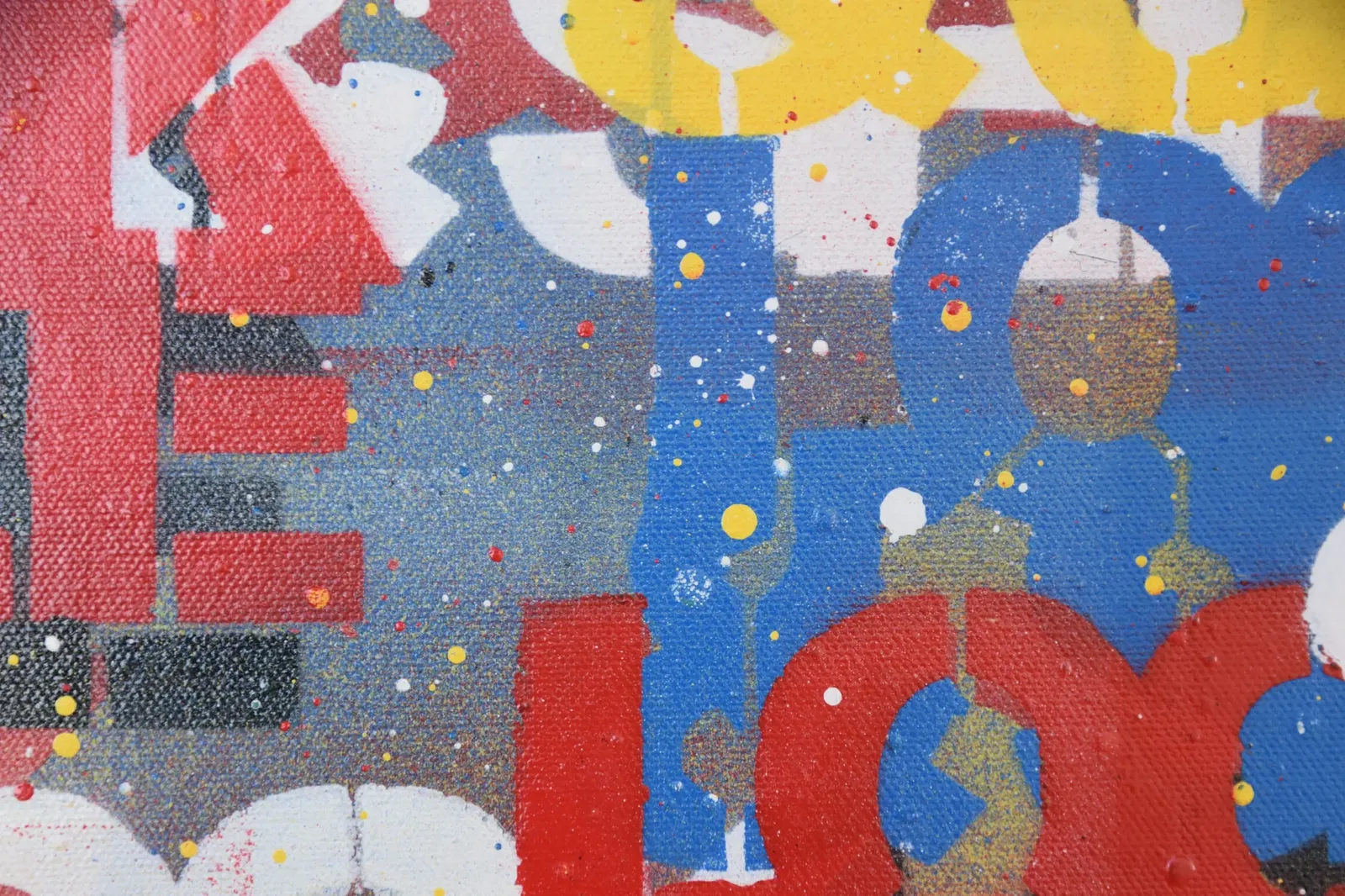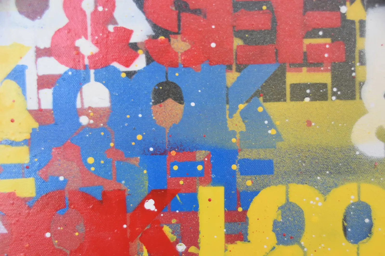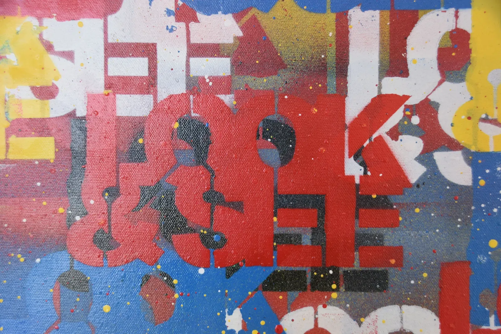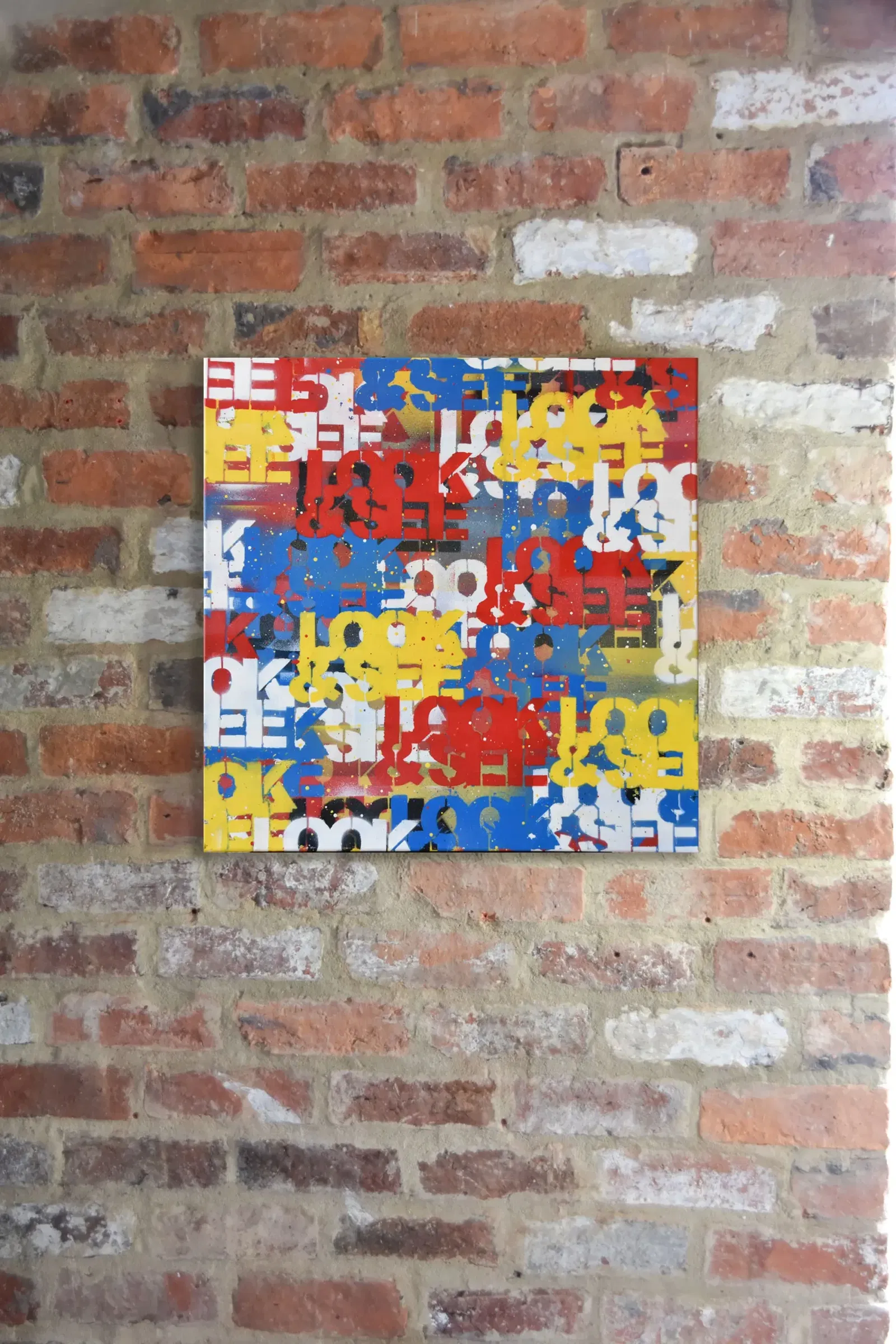 This artwork translates that experience into a contemporary conceptual canvas. Loud, basic colours reference the raw immediacy of street graffiti, while layered forms echo the way meaning can become obscured through excess. As with the streets of Exarcheia itself, the viewer is invited to search actively for the message rather than consume it passively.