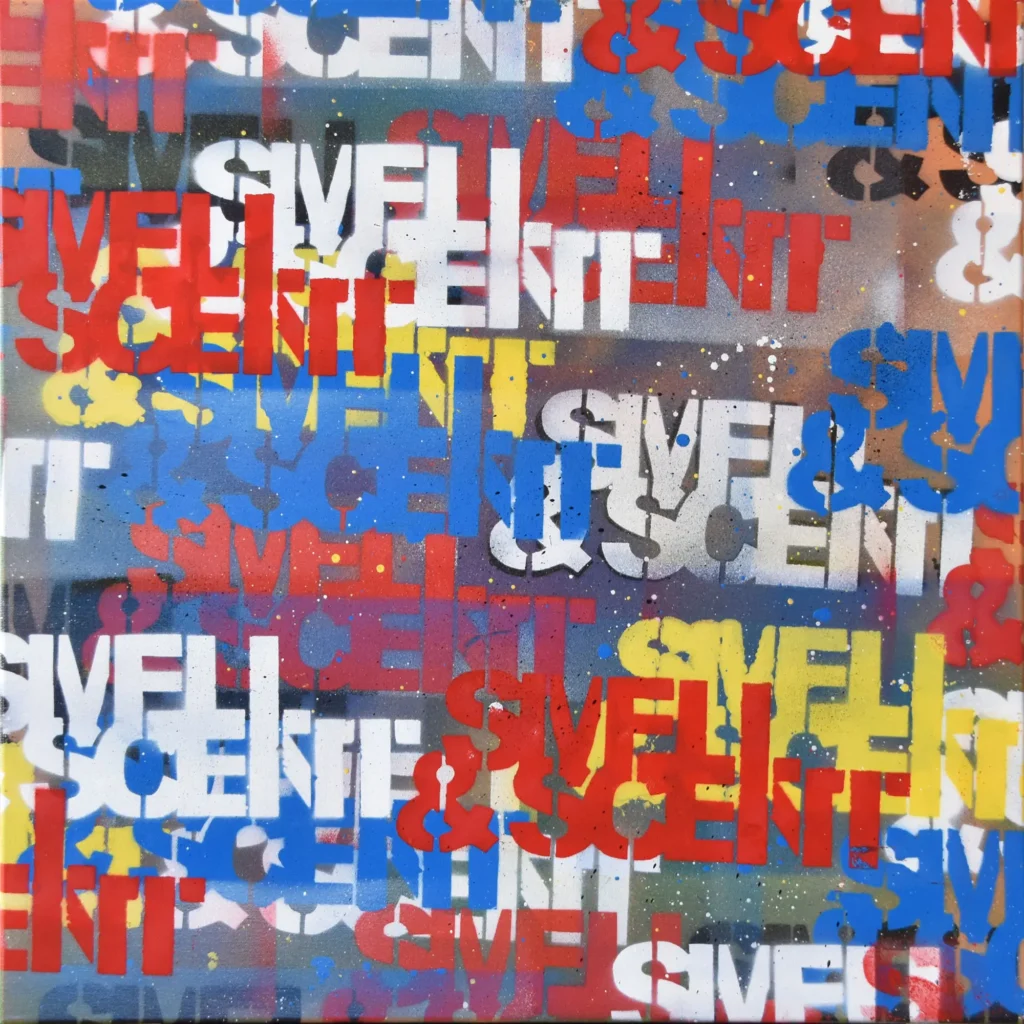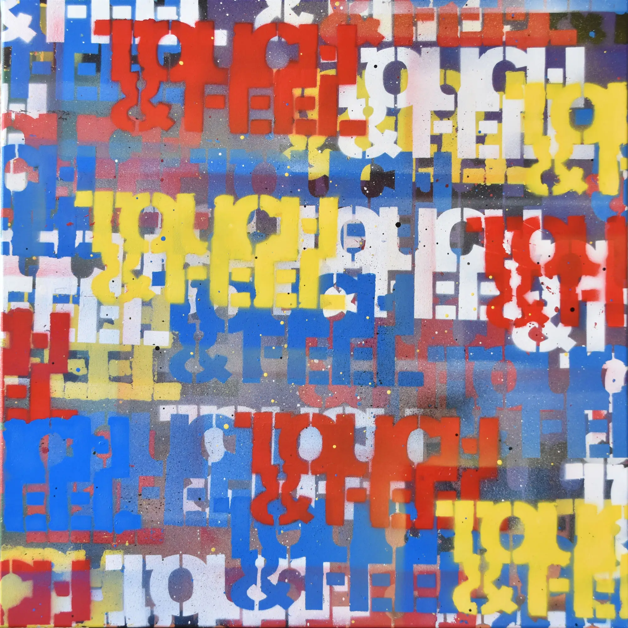 These artworks translate that experience into a canvas. Loud, basic colours reference the raw immediacy of street graffiti, while layered forms echo the way meaning can become obscured through excess. As with the streets of Exarcheia itself, the viewer is invited to search actively for the message rather than consume it passively.
